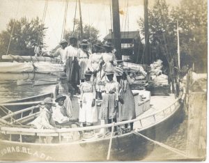 Group of Black women and children aboard bugeye Thomas Blades 1910. 1051.0014