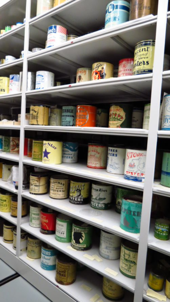 The library and collections center houses many tools of the Chesapeake maritime trades and fisheries. Figureheads, anchors, ceramics, textiles, rigging gear, decorative carvings, paper ephemera, and navigational instruments are represented. CBMM also has an extensive collection of more than 600 Maryland and Virginia oyster tins.