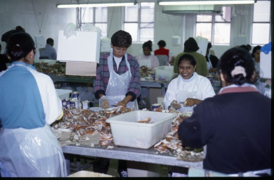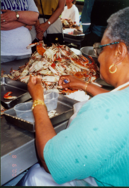 Crab picking is detailed work and has historically been done by women, both Black and white women from local communities, and since the 1980s, Latina jaiberas working seasonally on H-2B visas. Once located in Crisfield, the town that called itself the Seafood Capital, the Maryland Crab Meat Company was one of the state’s largest packing houses. All the essential elements of the plant are housed in this exhibition—and are interpreted in the words of the women who worked there.
